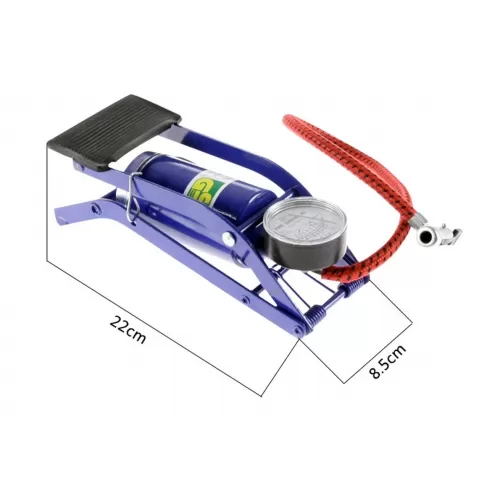 - Tyre inflator Just step on the lever of the foot pump with gauge to start the flow of air and you can clearly inflate any amount pressure with an easy-to-read gauge.